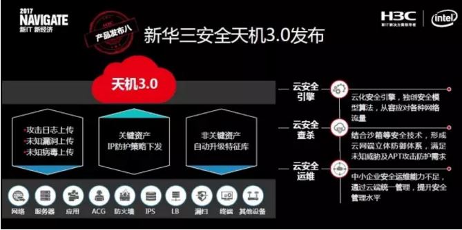 據(jù)了解,華三天機(jī)3.0具備了云安全引擎、云安全查殺、云安全運(yùn)維等功能,能夠構(gòu)建創(chuàng)新性的動(dòng)態(tài)安全能力中心,并能夠提供整體安全態(tài)勢(shì)監(jiān)控、安全業(yè)務(wù)快速部署、云安全防御、云端運(yùn)維等一體化的安全交付能力。
